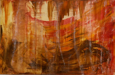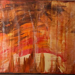 Es ist ein zusammen Spiel unterschiedlicher Techniken die ineinander fließen. Durch die Orangetöne gibt es dem Bild eine warme Energie die dennoch kraftvoll ist. Ein außergewöhnliches Bild das dir jeden Augenblick was neues zeigt.