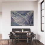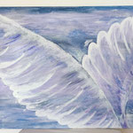 Das Werk ist mit blauem und lila Glitter veredelt, das schimmert bei bestimmten Lichteinfall.