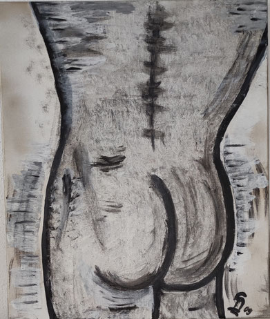 Dieser Akt ist mit unterscheidlichen Techniken gemalt