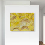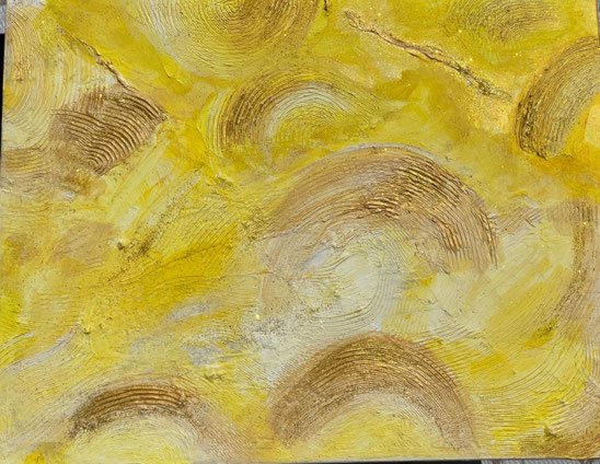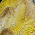Dieses Werk ist mit leuchtenden gelben Aycrlfarben gemalt, Tupftechnik und Struktur mit eingearbeitet. Es ist mit Goldglitter veredelt. Durch die unterschiedlichen Gelbtöne läßt dieses Bild deine Wohnräume strahlen.